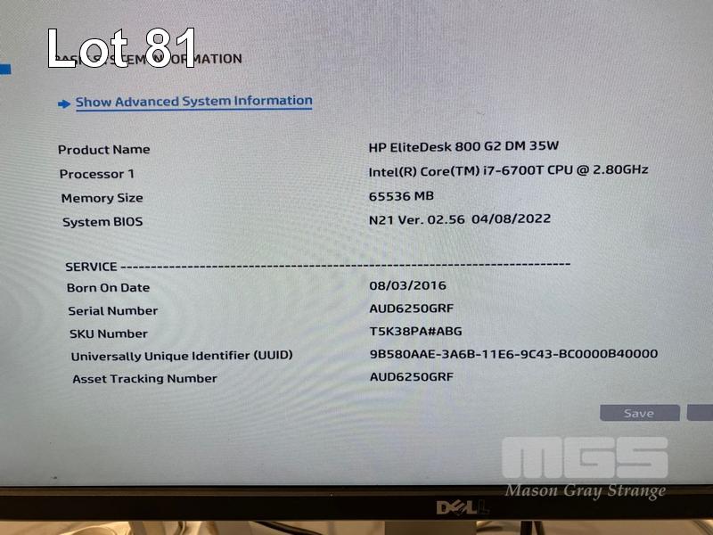 DESKTOP PC, HP ELITEDESK 800 G2 DM 35W MINI PC, CORE i7 6700T (6TH GEN) @ 2.8GHz, 64GB DDR4 RAM, 250GB NVMe M.2 SSD, 1TB SSD, WINDOWS 10 PRO INSTALLED & POWER SUPPLY (NO KEYBOARD, NO MOUSE) S/N:AUD6250GRF