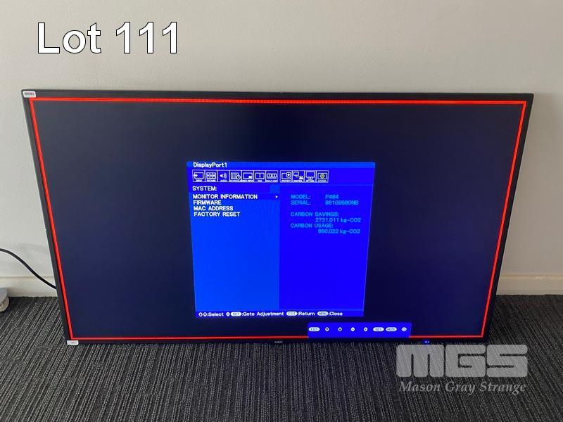 MONITOR, NEC MULTISYNC P484 48" COMMERCIAL LCD DISPLAY (NO REMOTE, NO STAND) S/N:98109580NB