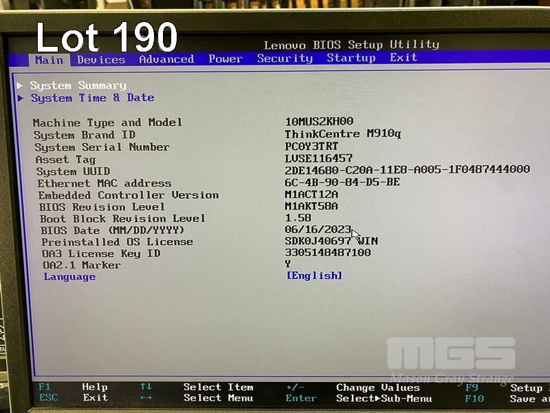 DESKTOP PC, LENOVO THINKCENTRE M910q TINY, CORE i5 7500T (7TH GEN) @ 2.7GHz, 8GB DDR4 RAM, 250GB SSD, Wi-Fi, BLUETOOTH, WINDOWS 10 PRO INSTALLED & POWER SUPPLY (NO KEYBOARD, NO MOUSE) S/N:PC0Y3TRT