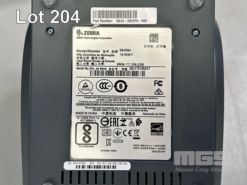 ZEBRA GK420d LABEL PRINTER WITH POWER SUPPLY S/N:8444204