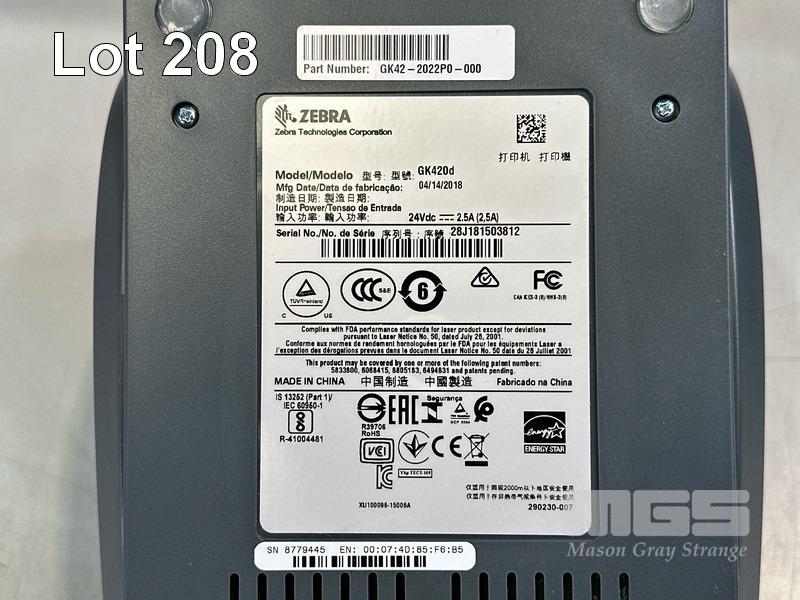 ZEBRA GK420d LABEL PRINTER WITH POWER SUPPLY S/N:8779445