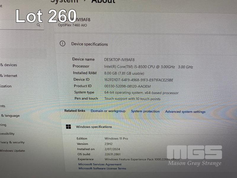 ALL-IN-ONE PC, DELL OPTIPLEX 7460, CORE i5 8500 (8TH GEN) @ 3GHz, 8GB DDR4 RAM, 512GB NVMe M.2 SSD, INBUILT 23.8" FHD TOUCHSCREEN (1920x1080), INTEL HD VIDEO, WEBCAM, 5 x USB, 1 x USB-C, WINDOWS 11 PRO INSTALLED, KEYBOARD & MOUSE S/N:1V86HY2