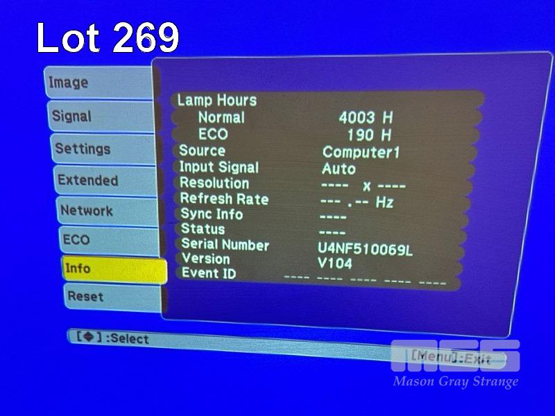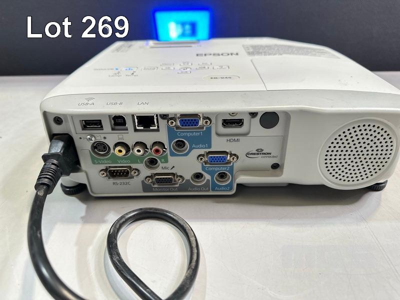 PROJECTOR, EPSON EB-945 3LCD, 3,000 LUMENS, 4,003 NORMAL HOURS & 190 ECO HOURS SHOWING WITH REMOTE S/N:U4NF510069L