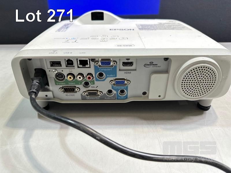 PROJECTOR, EPSON EB-535W SHORT THROW 3LCD, 3,400 LUMENS, 1,585 NORMAL HOURS & 352 ECO HOURS SHOWING WITH REMOTE S/N:VF7590058L