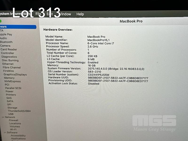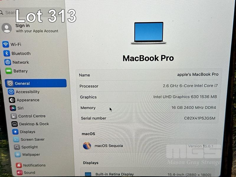 LAPTOP, APPLE MACBOOK PRO (A1990), CORE i7 8850H (8TH GEN) @ 2.6GHz, 16GB DDR4 RAM, 512GB SSD, 15.4" RETINA DISPLAY (2880x1800), 4GB RADEON PRO 560X VIDEO, INTEL UHD GRAPHICS 630, Wi-Fi, BLUETOOTH, MAC OS 15 INSTALLED & USB-C POWER SUPPLY S/N:C02X41P5JG5M