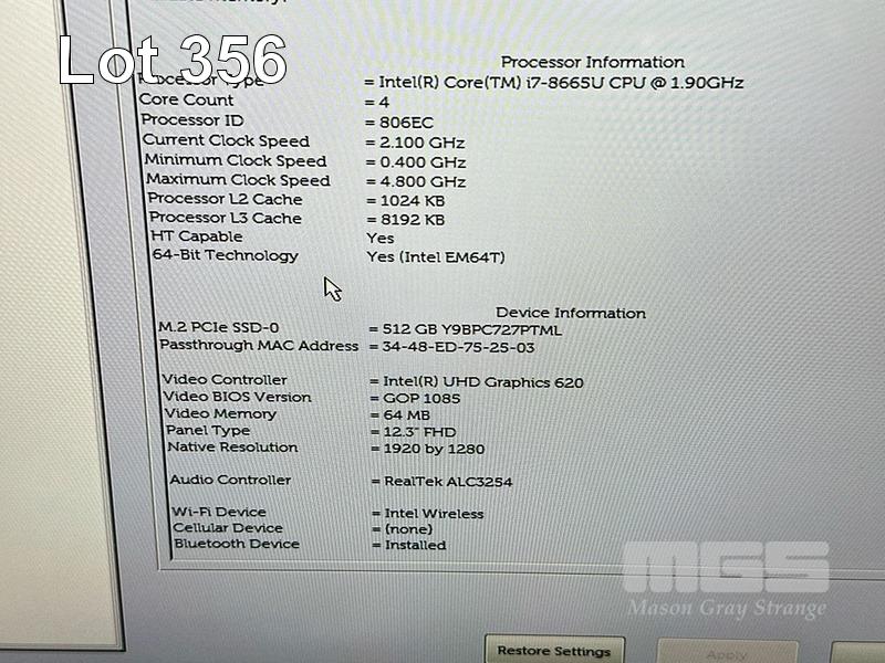 TABLET PC, DELL LATITUDE 7200 2-in-1, CORE i7 8665U (8TH GEN) @ 1.9GHz, 16GB DDR3 RAM, 512GB NVMe M.2 SSD, 12.3" TOUCHSCREEN (1920x1080), INTEL UHD GRAPHICS, Wi-Fi, BLUETOOTH, WINDOWS 11 PRO INSTALLED, KEYBOARD & USB-C POWER SUPPLY (NOTE: MINOR MARKS ON SCREEN) S/N:JX8N3Z2