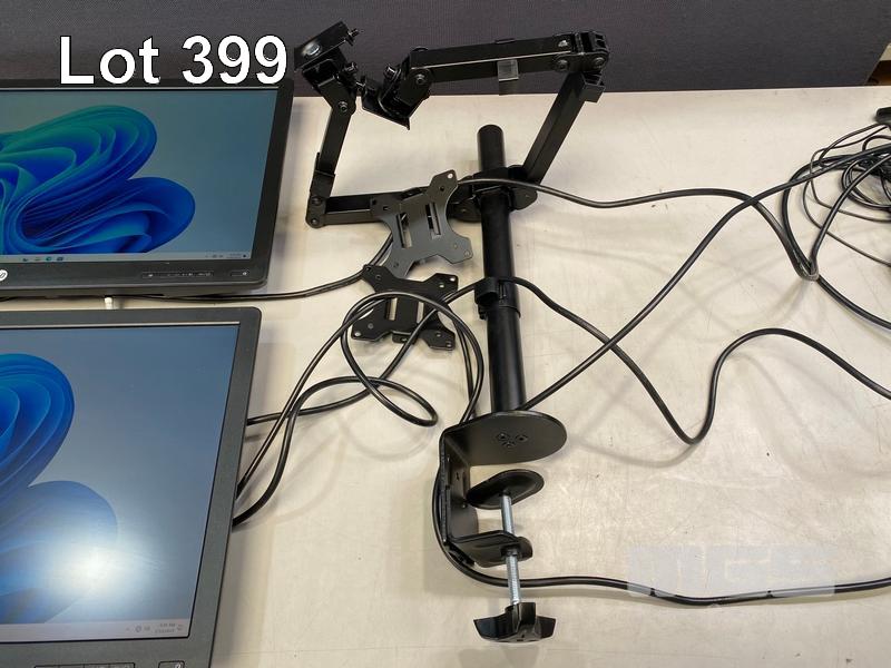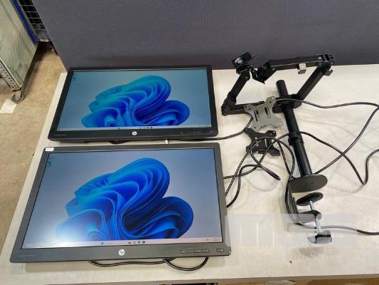 2 x MONITORS, HP PRODISPLAY P240va 23.8" LED-BL LCD WIDESCREEN, HDMI, DISPLAYPORT, VGA (WITH CABLES) (NO HDMI CABLE) WITH DUAL DESK MOUNT MONITOR ARM, BLACK