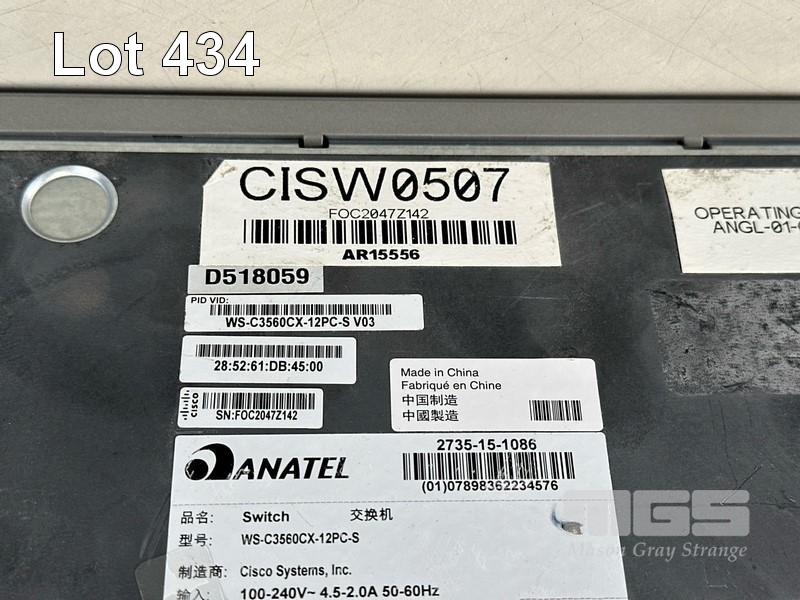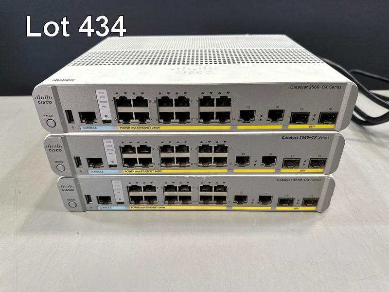3 x CISCO CATALYST 3560-CX SERIES SWITCHES, WS-C3560CX-12PC-S V03 WITH IEC-C14 TO C15 NOTCH POWER CABLES S/N:FOC2047Z142, FOC2047Z13S, FOC2308T646