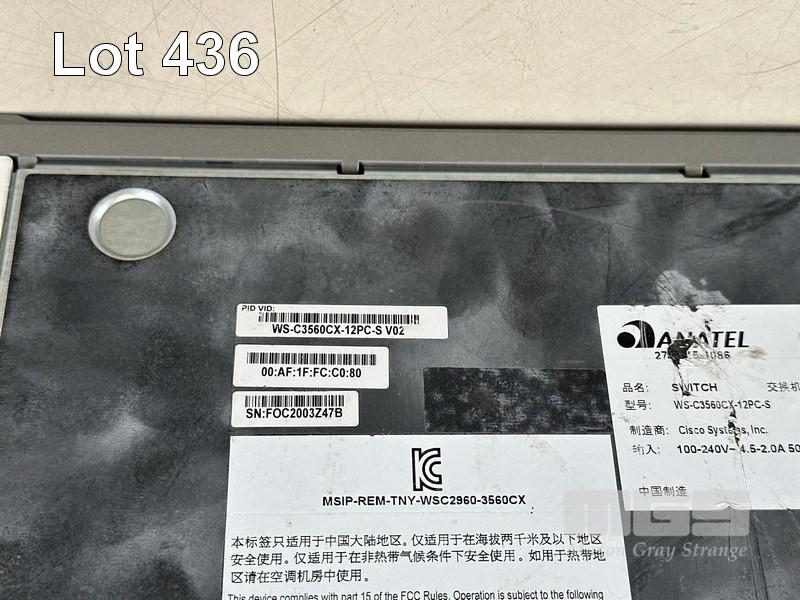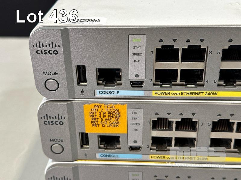3 x CISCO CATALYST 3560-CX SERIES SWITCHES, WS-C3560CX-12PC-S V02 WITH IEC-C14 TO C15 NOTCH POWER CABLES S/N:FOC2003Z47B, FOC2004W1QN, FOC2004W1ZF