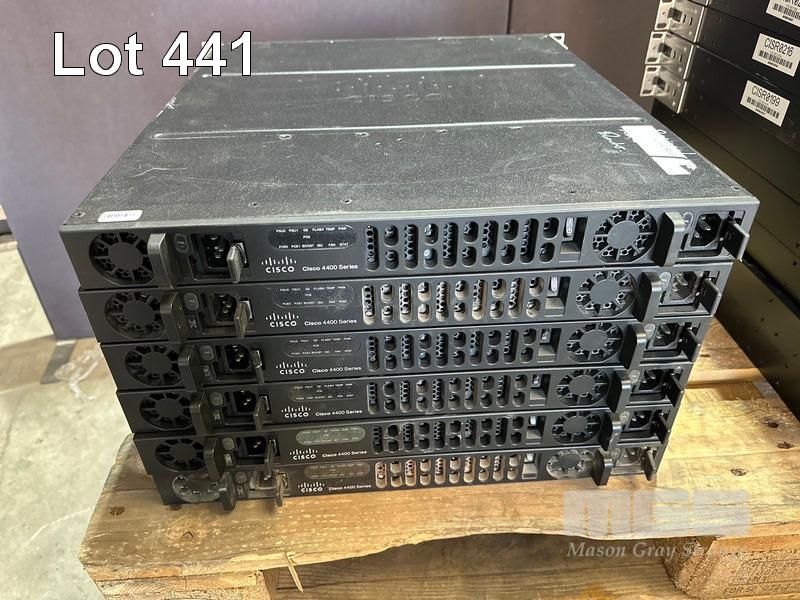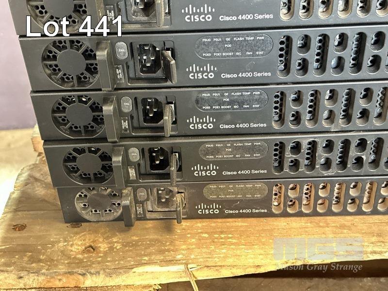 6 x CISCO 4400 SERIES INTEGRATED SERVICES ROUTERS, ISR4431/K9, 2 x PSU S/N:FJC2342A0LZ, FGL1952113K, FGL19521135, FGL1952112G, FJC2252A08C, FGL19521139