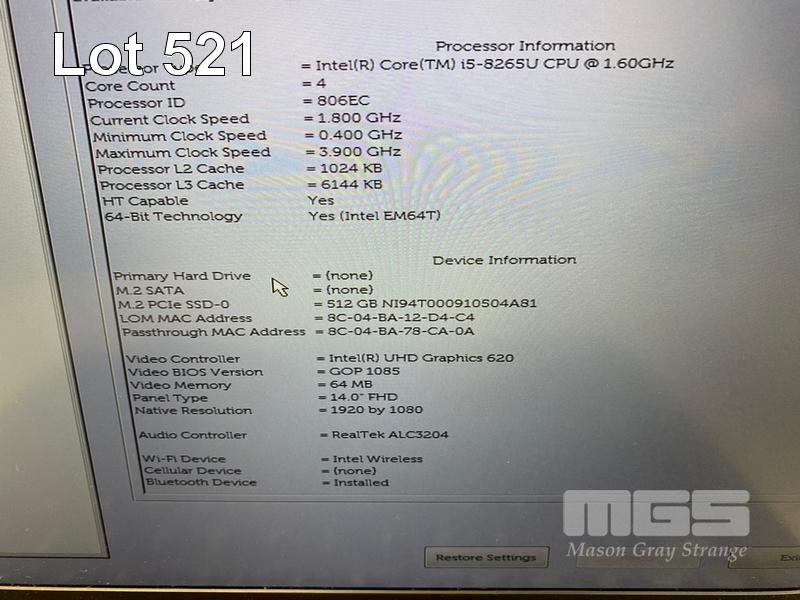 LAPTOP, DELL LATITUDE 5400, CORE i5 8265U (8TH GEN) @ 1.6GHz, 8GB DDR4 RAM, 512GB NVMe M.2 SSD, 14" WIDESCREEN (1920x1080), INTEL UHD GRAPHICS 620, Wi-Fi, BLUETOOTH, WINDOWS 11 HOME INSTALLED & POWER SUPPLY S/N:G7QX2X2