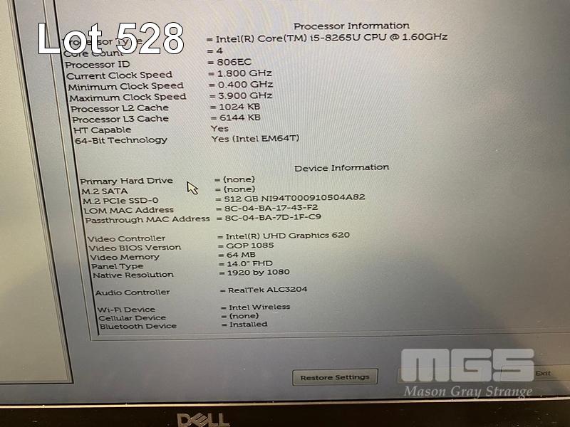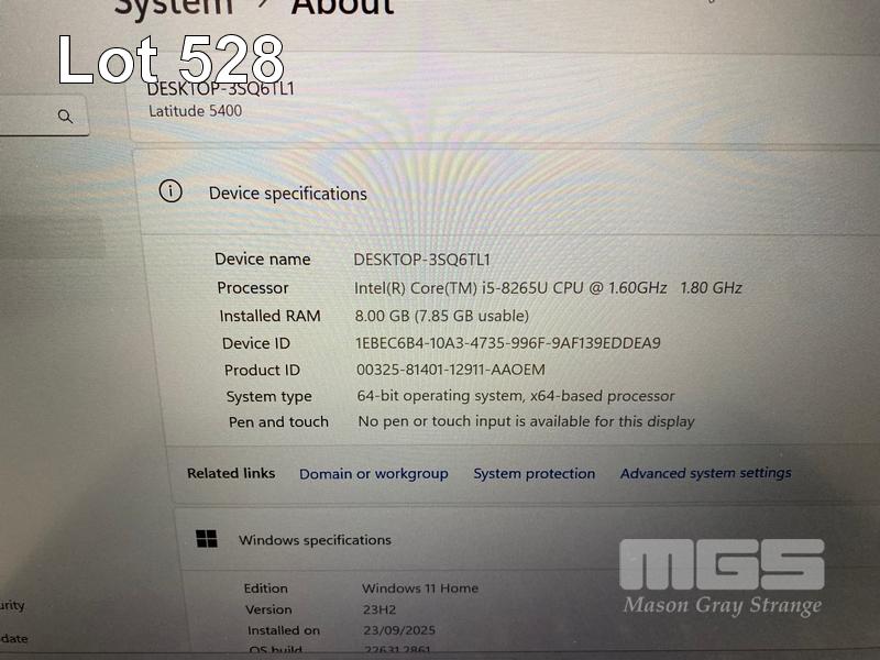 LAPTOP, DELL LATITUDE 5400, CORE i5 8265U (8TH GEN) @ 1.6GHz, 8GB DDR4 RAM, 512GB NVMe M.2 SSD, 14" WIDESCREEN (1920x1080), INTEL UHD GRAPHICS 620, Wi-Fi, BLUETOOTH, WINDOWS 11 HOME INSTALLED & POWER SUPPLY (NOTE: MARKS ON SCREEN) S/N:1GS23X2