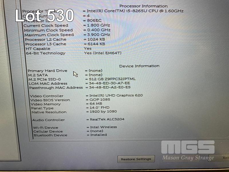 LAPTOP, DELL LATITUDE 5400, CORE i5 8265U (8TH GEN) @ 1.6GHz, 8GB DDR4 RAM, 512GB NVMe M.2 SSD, 14" WIDESCREEN (1920x1080), INTEL UHD GRAPHICS 620, Wi-Fi, BLUETOOTH, WINDOWS 11 HOME INSTALLED & POWER SUPPLY (NOTE: BATTERY NOT HOLDING CHARGE, MARKS ON SCREEN) S/N:4C1HQ13