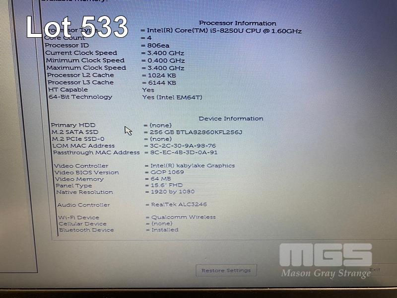 LAPTOP, DELL LATITUDE 3590, CORE i5 8250U (8TH GEN) @ 1.6GHz, 8GB DDR4 RAM, 256GB M.2 SSD, 15.6" WIDESCREEN (1920x1080), INTEL HD VIDEO, Wi-Fi, BLUETOOTH, WINDOWS 11 HOME INSTALLED & POWER SUPPLY S/N:G574YR2