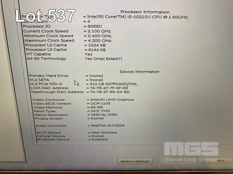 LAPTOP, DELL LATITUDE 5410, CORE i5 10210U (10TH GEN) @ 1.6GHz, 8GB DDR4 RAM, 512GB NVMe M.2 SSD, 14" WIDESCREEN (1920x1080), INTEL UHD GRAPHICS, Wi-Fi, BLUETOOTH, WINDOWS 11 HOME INSTALLED & POWER SUPPLY (NOTE: CASING PEELING, BATTERY NOT HOLDING CHARGE, MINOR MARKS ON SCREEN) S/N:F79H063