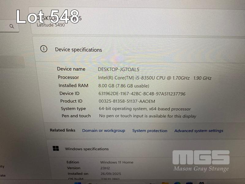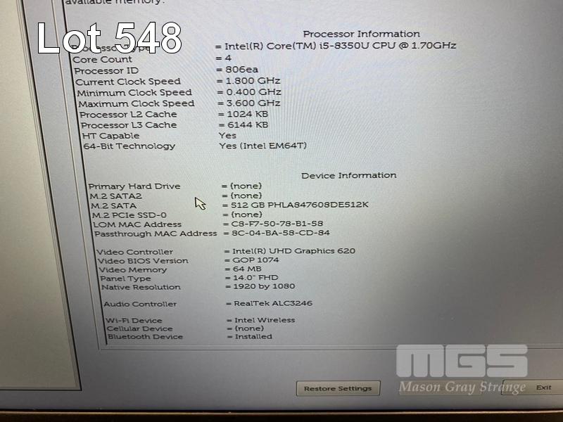 LAPTOP, DELL LATITUDE 5490, CORE i5 8350U (8TH GEN) @ 1.7GHz, 8GB DDR4 RAM, 512GB M.2 SSD, 14" WIDESCREEN (1920x1080), INTEL UHD GRAPHICS 620, Wi-Fi, BLUETOOTH, WINDOWS 11 HOME INSTALLED & POWER SUPPLY S/N:67HGRV2