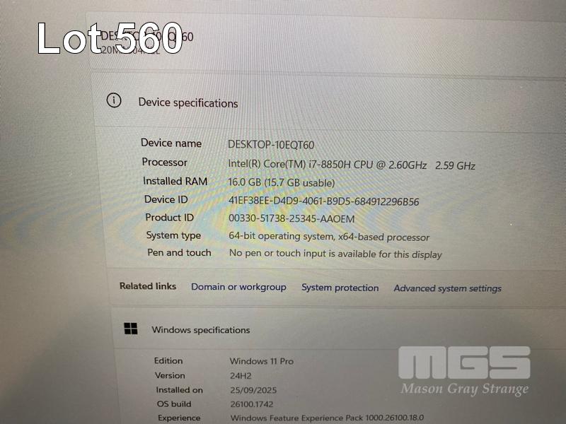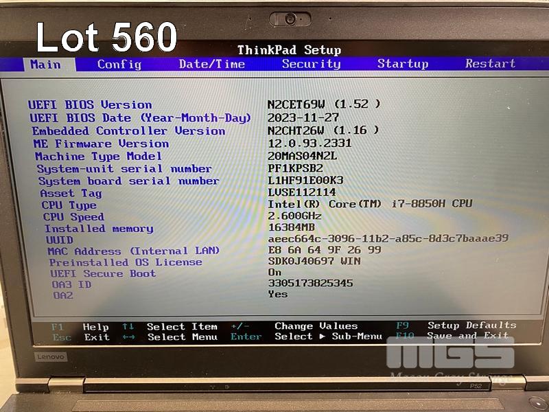 LAPTOP, LENOVO THINKPAD P52 MOBILE WORKSTATION, TYPE 20MA, CORE i7 8850H (8TH GEN) @ 2.6GHz, 16GB DDR4 RAM, 512GB NVMe M.2 SSD, 15.6" WIDESCREEN (1920x1080), 4GB NVIDIA QUADRO P2000 VIDEO, Wi-Fi, BLUETOOTH, WINDOWS 11 PRO INSTALLED (NO POWER SUPPLY) S/N:PF1KPSB2