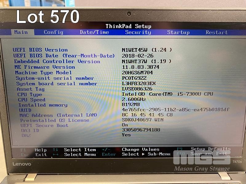 LAPTOP, LENOVO THINKPAD T470s, TYPE 20HG, CORE i5 7300U (7TH GEN) @ 2.6GHz, 8GB DDR4 RAM, 256GB NVMe M.2 SSD, 14" TOUCHSCREEN (1920x1080), INTEL HD VIDEO, Wi-Fi, BLUETOOTH, WINDOWS 10 PRO INSTALLED & POWER SUPPLY (NOTE: CRACK LINE ON CASING, DAMAGE UNDERNEATH, BATTERY 2 NOT CHARGING, MINOR MARKS ON SCREEN) S/N:PC0TG9ZZ