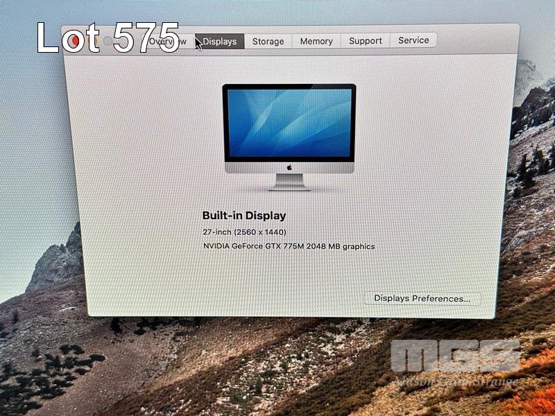 APPLE iMAC (A1419), CORE i7 4771 (4TH GEN) @ 3.5GHz, 24GB DDR3 RAM, 128GB SSD, BUILT-IN 27" DISPLAY (2560x1440), 2GB NVIDIA GEFORCE GT 775M VIDEO, Wi-Fi, BLUETOOTH, MAC OS 10.13 INSTALLED, KEYBOARD & MOUSE (NOTE: DAMAGED) S/N:C02LP0U9F8JC