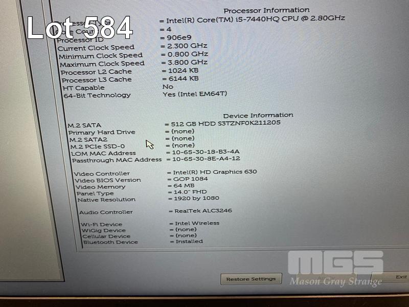 LAPTOP, DELL LATITUDE 5480, CORE i5 7440HQ (7TH GEN) @ 2.8GHz, 8GB DDR4 RAM, 512GB M.2 SSD, 14" WIDESCREEN (1920x1080), INTEL HD GRAPHICS 630, Wi-Fi, BLUETOOTH, WINDOWS 10 HOME INSTALLED & POWER SUPPLY S/N:7TB71N2