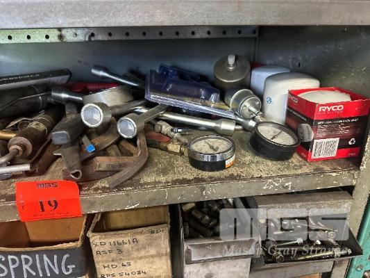 LARGE ALLEN KEYS, WHEEL BRACES, GAUGES, SPRING COMPRESSOR, C SPANNERS, RASPS, ETC 1 x SHELF