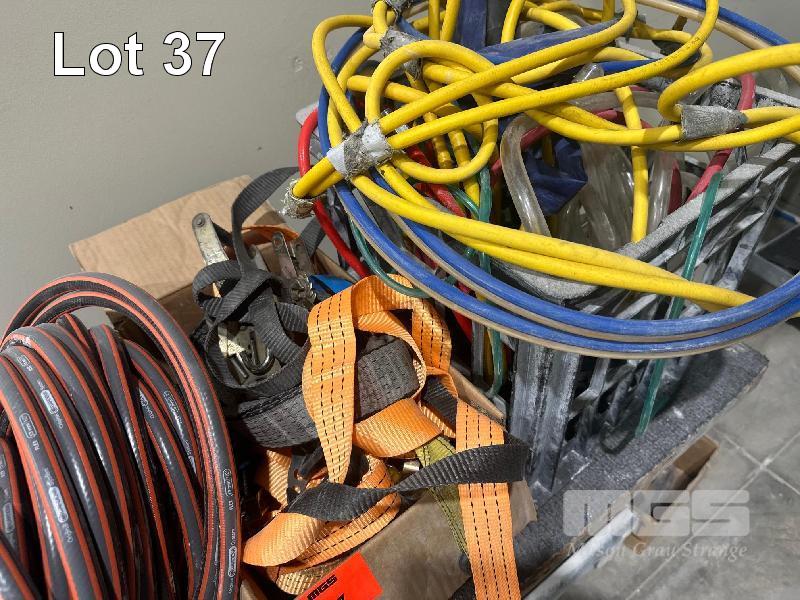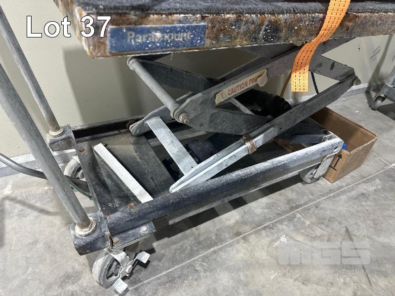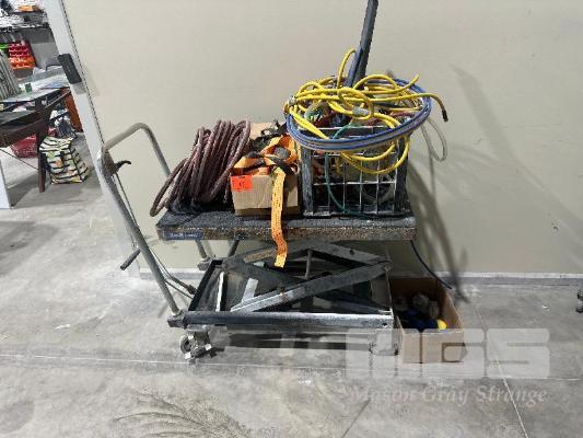 PARAMOUNT SCISSOR LIFT TROLLEY + AIR HOSE, RATCHET STRAPS, ETC