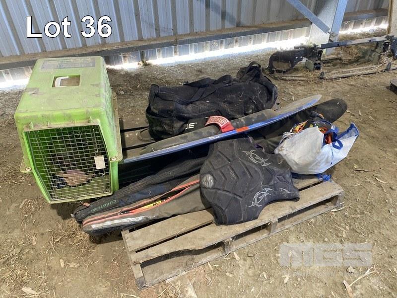 WATER SKIS, VESTS, KNEEBOARD & PET CRATE