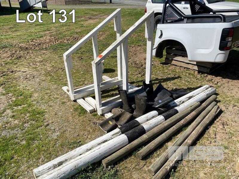 TIMBER HORSE JUMPING RAILS & ASSORTED GUM BOOTS
