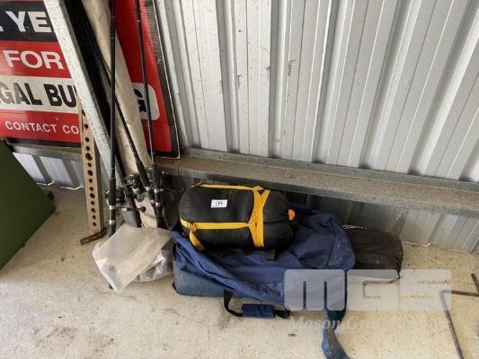3 x FISHING RODS, SLEEPING BAG & TENT