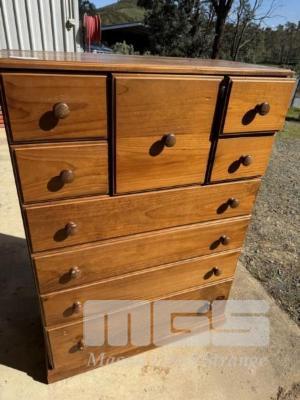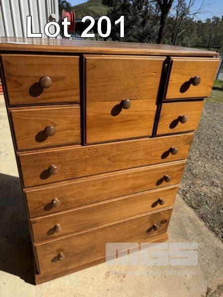 STAINED TIMBER, 9 DRAWER TALL BOY CHEST