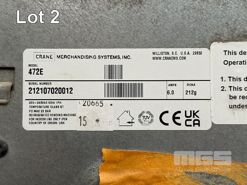 CRANE COMBINATION SNACK & BEVERAGE VENDING MACHINE, MOD: 472E REFRIGERATED, 44 TOTAL SELECTIONS, ACCEPTS COINS, NOTES & PAYWAVE PAYMENTS 9″ TOUCHSCREEN USER PANEL, WITH ON SCREEN ADVERTISING VIDEOS AND CART PURCHASING, LED PIL LIGHTING ON THE USER PANEL MULTI-PRODUCT PURCHASES MADE IN USA, 240V 10 AMP WITH KEY RRP: $11,000 USD