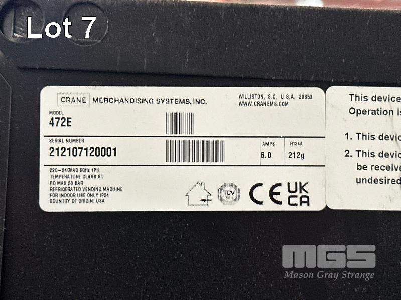 CRANE COMBINATION SNACK & BEVERAGE VENDING MACHINE, MOD: 472E REFRIGERATED, 44 TOTAL SELECTIONS, ACCEPTS COINS, NOTES & PAYWAVE PAYMENTS 9″ TOUCHSCREEN USER PANEL, WITH ON SCREEN ADVERTISING VIDEOS AND CART PURCHASING, LED PIL LIGHTING ON THE USER PANEL MULTI-PRODUCT PURCHASES MADE IN USA, 240V 10 AMP WITH KEY RRP: $11,000 USD
