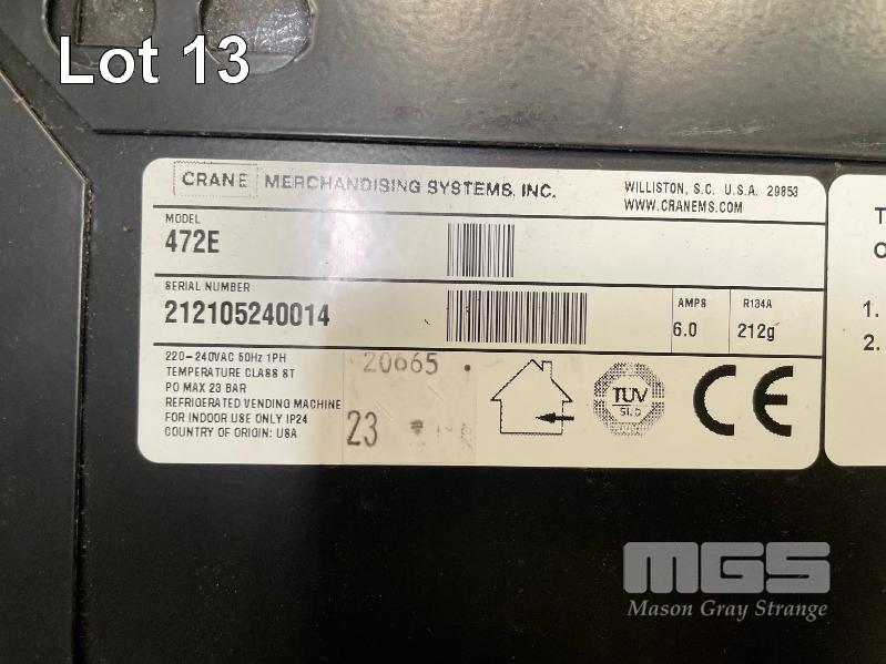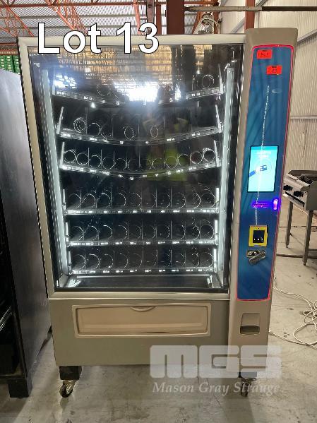 CRANE COMBINATION SNACK & BEVERAGE VENDING MACHINE, MOD: 472E REFRIGERATED, 44 TOTAL SELECTIONS, ACCEPTS COINS, NOTES & PAYWAVE PAYMENTS 9″ TOUCHSCREEN USER PANEL, WITH ON SCREEN ADVERTISING VIDEOS AND CART PURCHASING, LED PIL LIGHTING ON THE USER PANEL MULTI-PRODUCT PURCHASES MADE IN USA, 240V 10 AMP WITH KEY RRP: $11,000 USD NOTE: PLASTIC SHELVES WARPED, NEED REPLACING