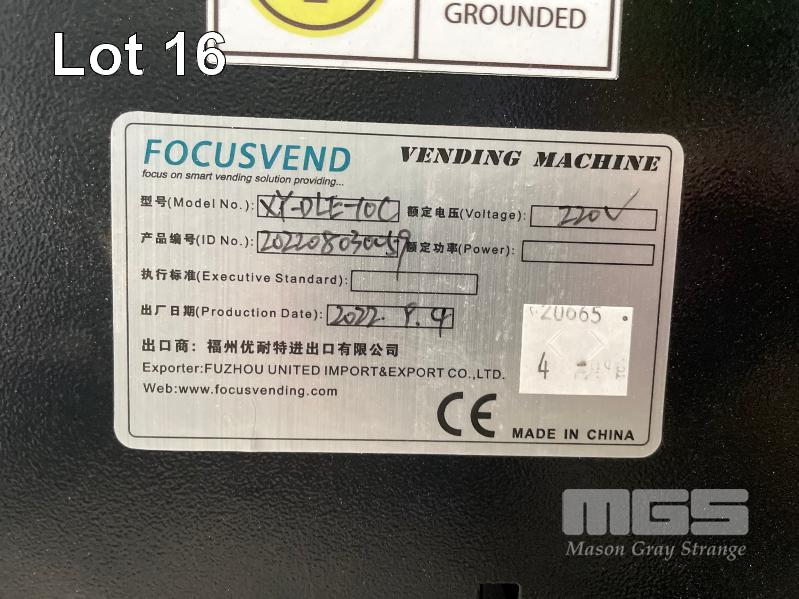 FOCUS VEND COMBINATION SNACK & BEVERAGE VENDING MACHINE, AS NEW! MOD: XY-DLE-10C, DOM: 2022 REFRIGERATED, LED DISPLAY, ACCEPTS COINS, CASH & PAYWAVE PAYMENTS NOTE: PAYMENT SYSTEM INCLUDED NOT INSTALLED, INCLUDES SOME SPARE PARTS (REFER PHOTOS) 240V 10 AMP