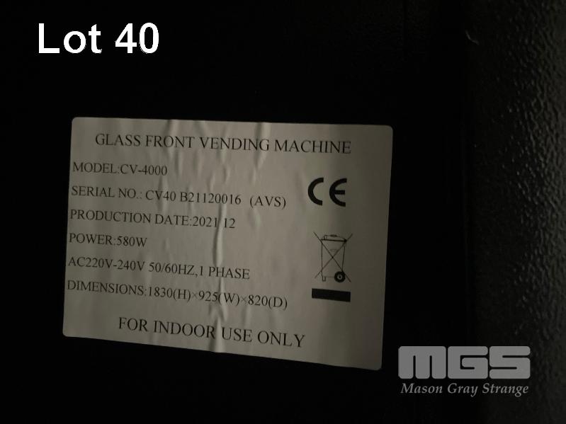 REFRIGERATED VENDING MACHINE, MOD: CV-4000, ACCEPTS COINS, NOTES & PAYWAVE PAYMENTS, 240V 10AMP NOTE: NOT POWERING UP