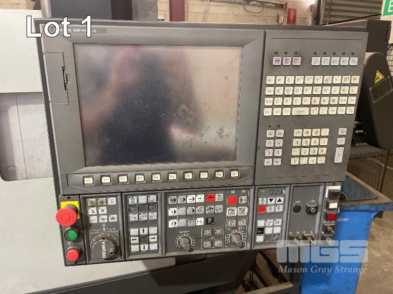 OKUMA CNC LATHE, TYPE: GENOS L300E-M, SERIAL: PEA494, DOM: 07/2013, GROSS WEIGHT: 6,600kg, CONTROL PANEL MOD: OSP-P300L-R, 415V WITH WASTE CONVEYOR & FULL SET OPERATION BOOKS