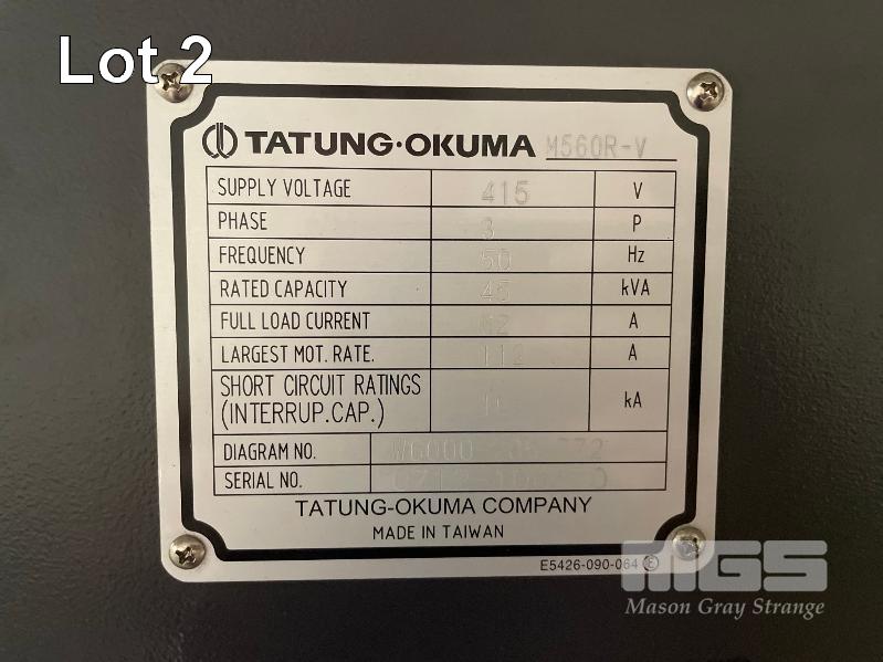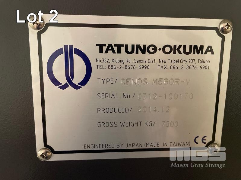 OKUMA CNC MILL, TYPE: GENOS M560R-U, SERIAL: 0712-100170, DOM: 12/2014, GROSS WEIGHT: 7,500kg, CONTROL PANEL MOD: OSP-P300M-R, 415V WITH KEY ARROW WASTE CONVEYOR & FULL SET OPERATION BOOKS, WITH LIFTING LUGS & TRANSPORT BRACKETS