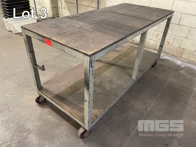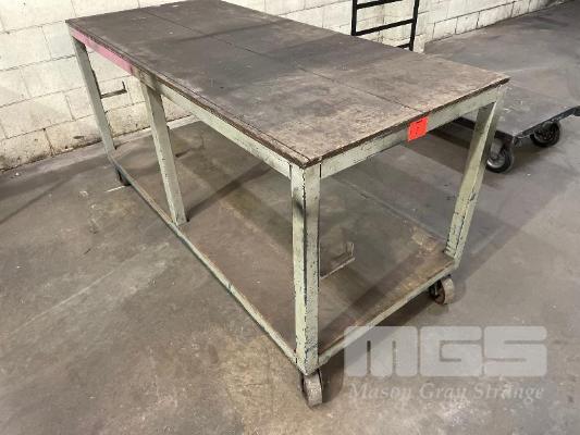 MOBILE WORK BENCH, 1800 x 800 x 930mm 2 TIER, CASTOR WHEELS, PLYWOOD TOP