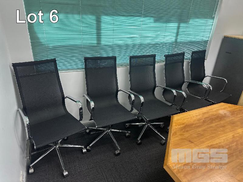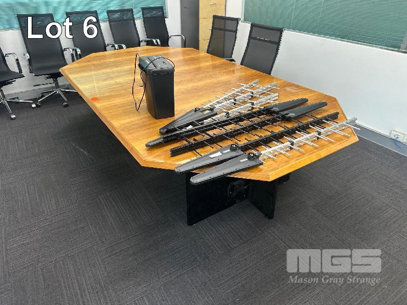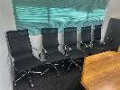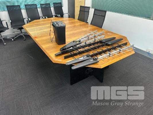 BOARD ROOM TABLE, 2950 x 1600mm, 7 x GAS LIFT CHAIRS, CHROME/BLACK