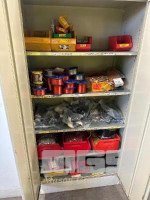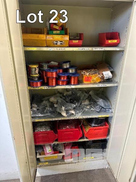 CONTENTS OF CUPBOARD, LARGE QTY ASSORTED WIRE CAPACITORS & RESISTORS ETC.