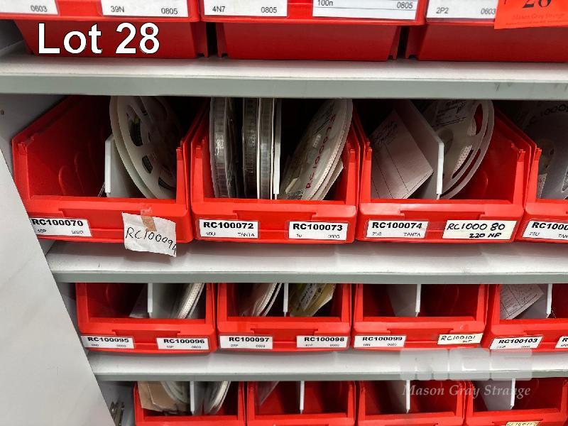 CONTENTS OF CUPBOARD, 20 x MAXI BINS, ASSORTED RESISTORS, CAPACITORS, DIODES, ETC.