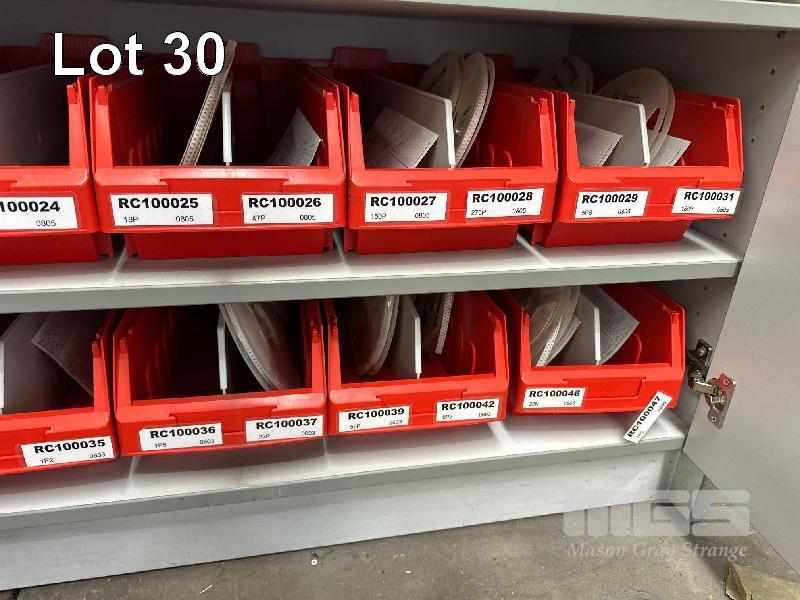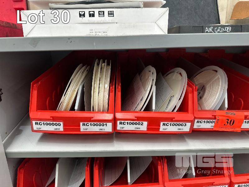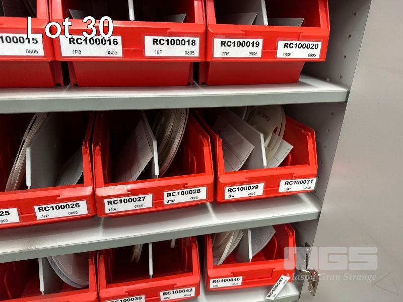 CONTENTS OF CUPBOARD, 20 x MAXI BINS, ASSORTED RESISTORS, CAPACITORS, DIODES, ETC.