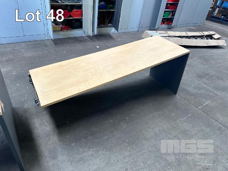 2 x KEY HOLE SHAPE DESKS WITH RETURN, TIMBER LAMINATE, 2400 x 2700mm