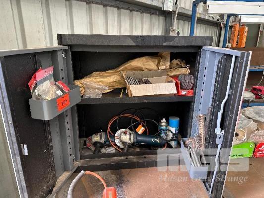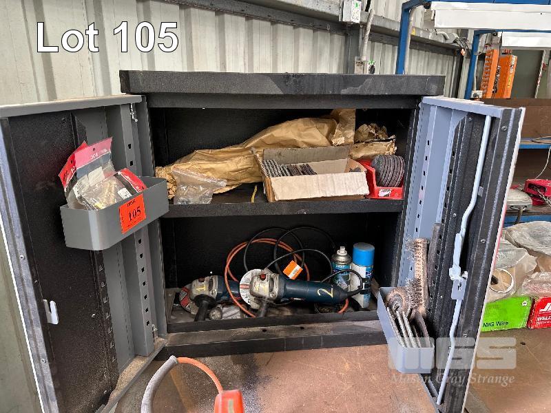 TOOL CABINET WITH 2 x BOSCH ANGLE GRINDERS, ASSORTED BLADES & CUTTING DISCS