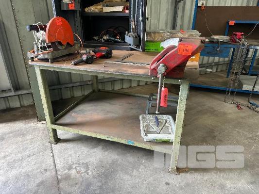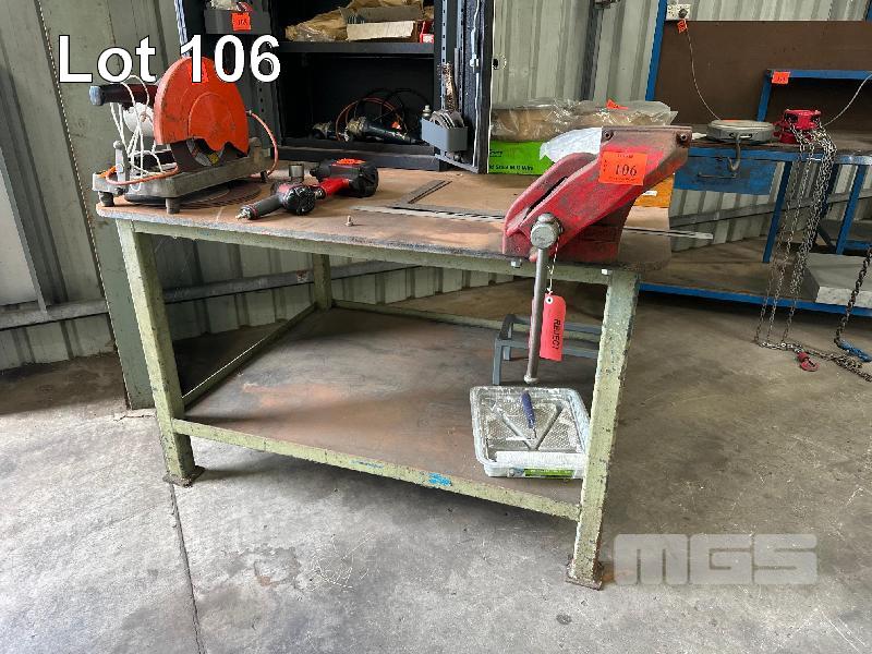 WELDERS BENCH, 1500 x 1200 x 930mm, 20mm PLATE TOP, WITH DAWN 150 OFFSET VICE