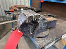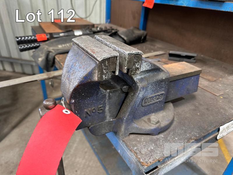 STEEL TUBE WORK BENCH, PARTICLEBOARD TOP, SHELF & LIGHT, 240V, 1580 x 800 x 940mm (H) WITH RECORD NO.5 VICE