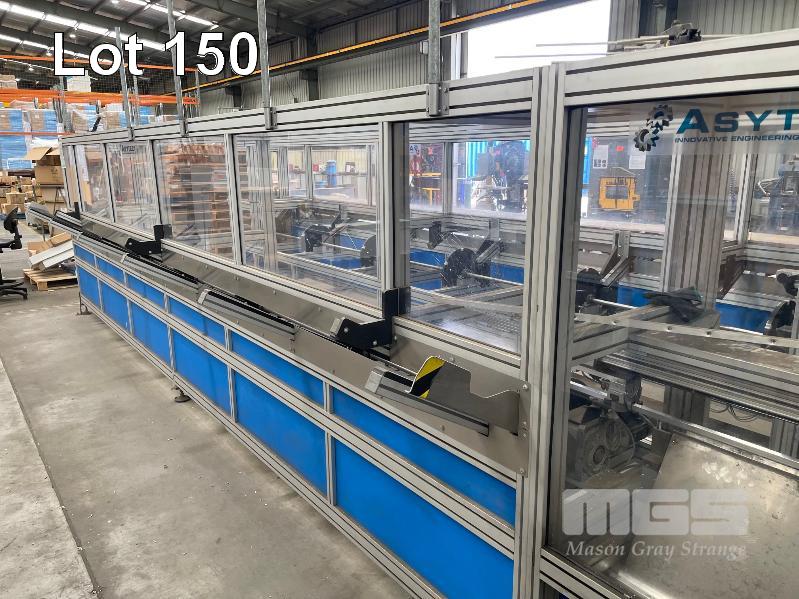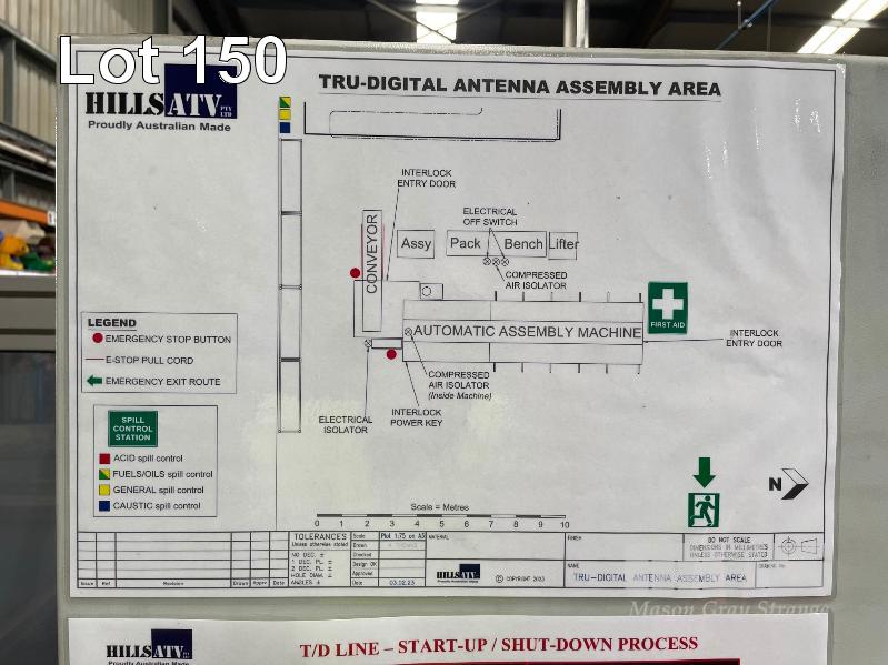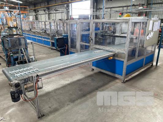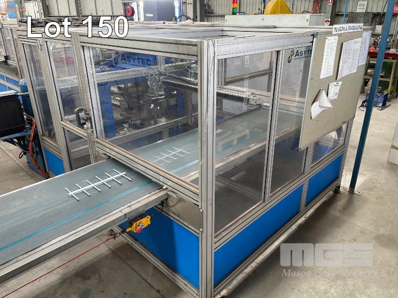 CNC TRU-DIGITAL ANTENNA AUTO ASSEMBLY LINE COMPRISING CUTTING STATION, FOLDING STATION, HOLE PUNCH STATION, PRESS & DIE STATION, OUTFEED CONVEYOR, ALLEN-BRADLEY CONTROL PANEL, MOD: PANEL VIEW PLUS 1000, 6m MATERIAL CAP, COMPLETE SAFETY ENCLOSURE & LOCK OUT KEYS