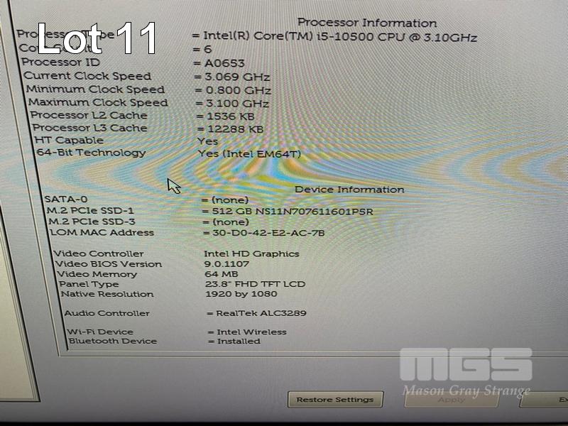 ALL-IN-ONE PC, DELL OPTIPLEX 7480, CORE i5 10500 (10TH GEN) @ 3.1GHz, 8GB DDR4 RAM, 512GB NVMe M.2 SSD, INBUILT 23.8" FHD WIDESCREEN (1920x1080), INTEL HD VIDEO, WEBCAM, 5 x USB, 1 x USB-C, Wi-Fi, BLUETOOTH, WINDOWS 11 HOME INSTALLED, KEYBOARD & MOUSE S/N:1SMWVD3