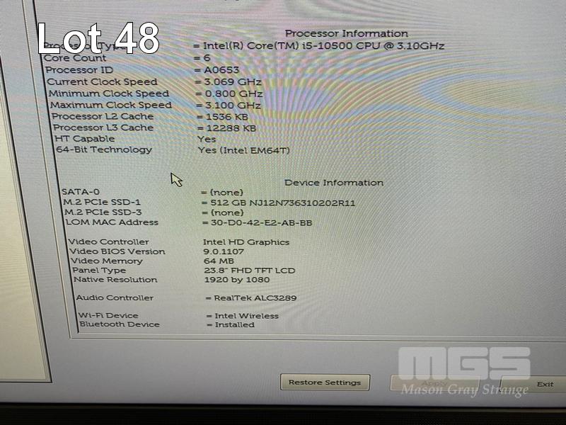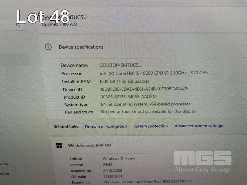 ALL-IN-ONE PC, DELL OPTIPLEX 7480, CORE i5 10500 (10TH GEN) @ 3.1GHz, 8GB DDR4 RAM, 512GB NVMe M.2 SSD, INBUILT 23.8" FHD WIDESCREEN (1920x1080), INTEL HD VIDEO, WEBCAM, 5 x USB, 1 x USB-C, Wi-Fi, BLUETOOTH, WINDOWS 11 HOME INSTALLED, KEYBOARD & MOUSE S/N:7LMWVD3