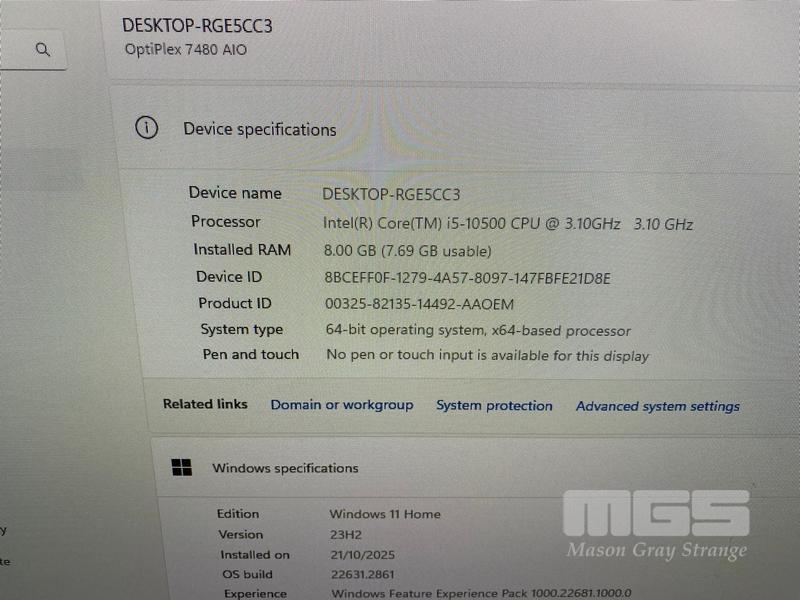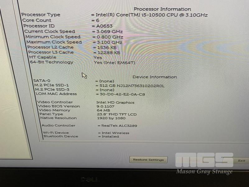 ALL-IN-ONE PC, DELL OPTIPLEX 7480, CORE i5 10500 (10TH GEN) @ 3.1GHz, 8GB DDR4 RAM, 512GB NVMe M.2 SSD, INBUILT 23.8" FHD WIDESCREEN (1920x1080), INTEL HD VIDEO, WEBCAM, 5 x USB, 1 x USB-C, Wi-Fi, BLUETOOTH, WINDOWS 11 HOME INSTALLED, KEYBOARD & MOUSE S/N:JKMWVD3